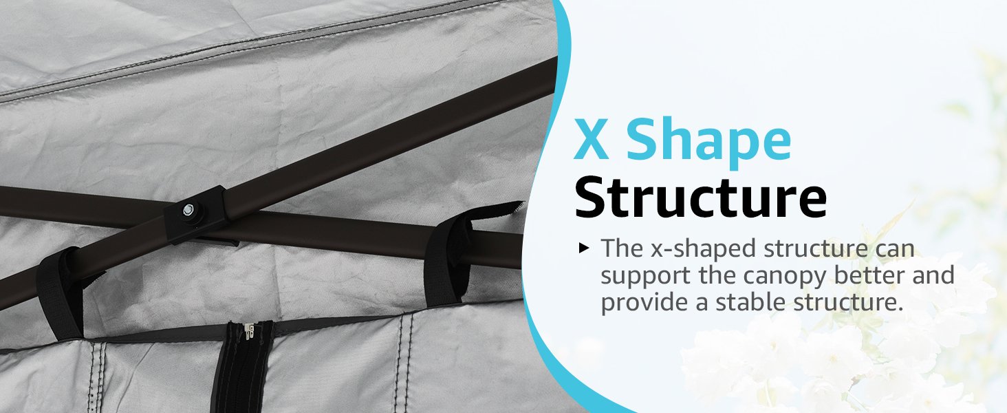 Size | 10’x10’ straight leg frame and 13’x13’ large canopy |