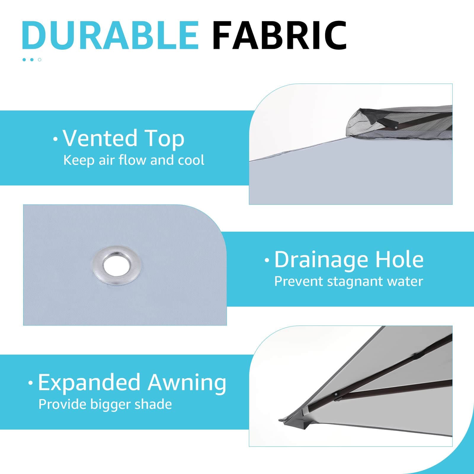 9′ Half Round Patio Umbrella with Crank, 3 Colors