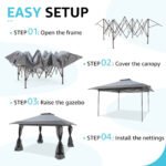 - Easy Setup & Wide Use-Setup is efficient and hassle-free, including all the necessaries and instructions, it’s easy installation and disassembly. This spacious gazebo is suitable for the home garden, playground, party, activities, camping, backyard events, etc.