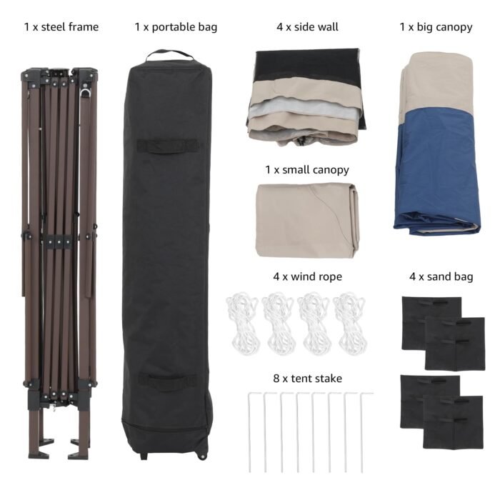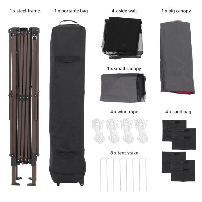 - Durable & Height Adjustable-Made of powder-coated steel frame and UV-protected 210D waterproof Oxford fabric, the outdoor pop-up gazebo tent is for all-weather use. Also, this patio shelter gazebo’s height can be adjusted in 2 positions, you can choose the height according to your need