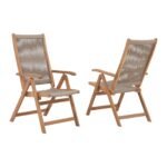 2pcs Folding Patio Dining Chairs, Outdoor Acacia Wooden Rope Reclining Chair w/Armrest
