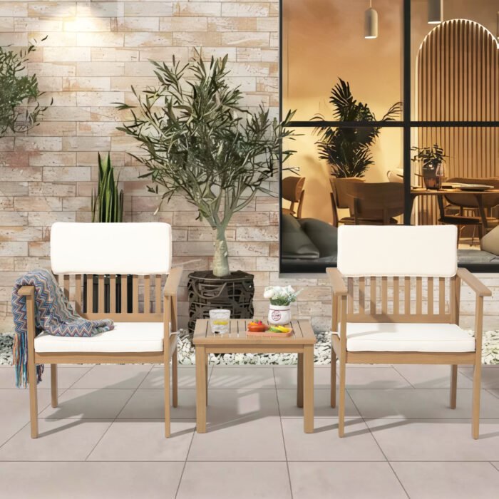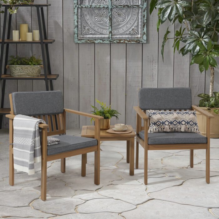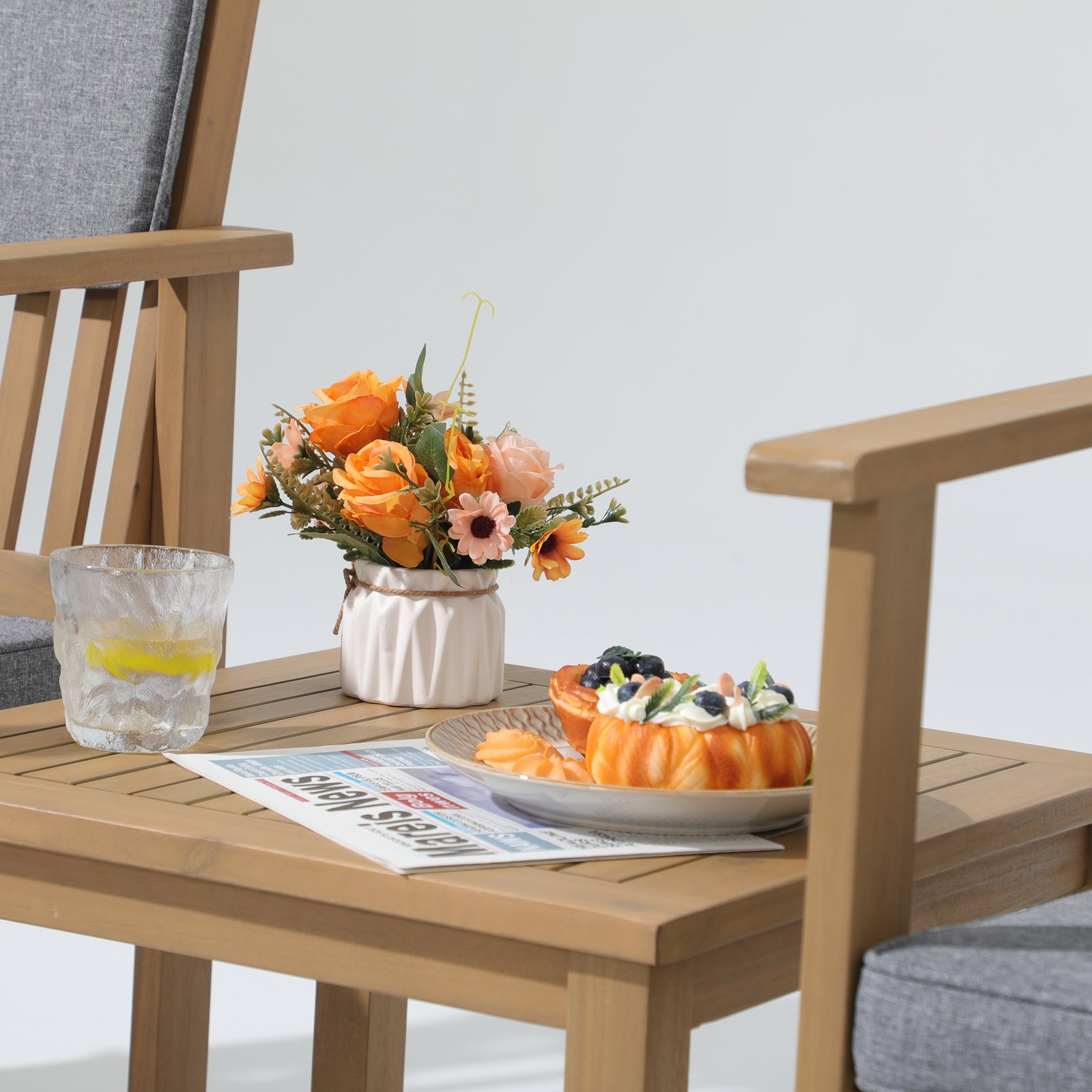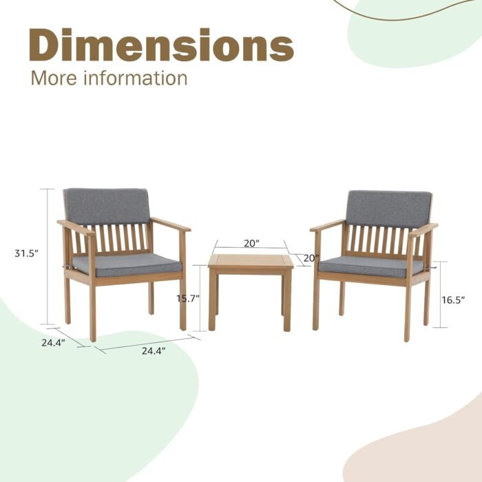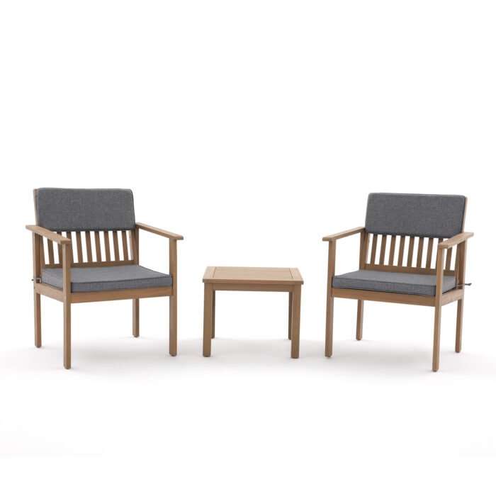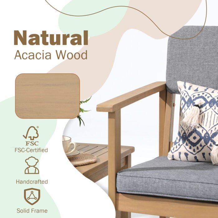 - FSC-Certified Acacia Wood – patio bistro set is made of sustainable wood, FSC-certified acacia wood offers a rich, natural look and adds a significantly longer lifespan. Place outdoors or indoors for a vintage feel.