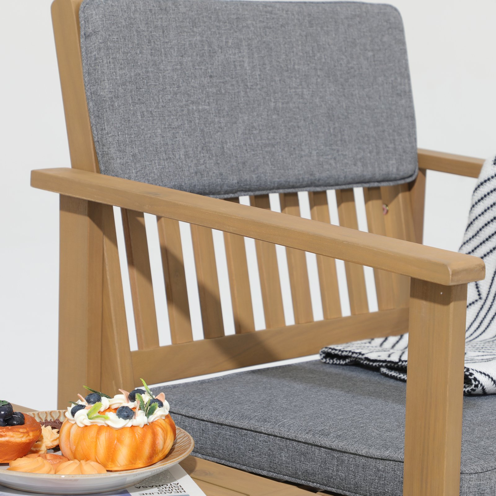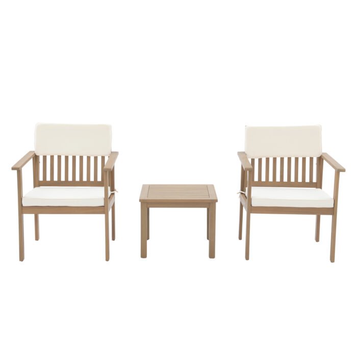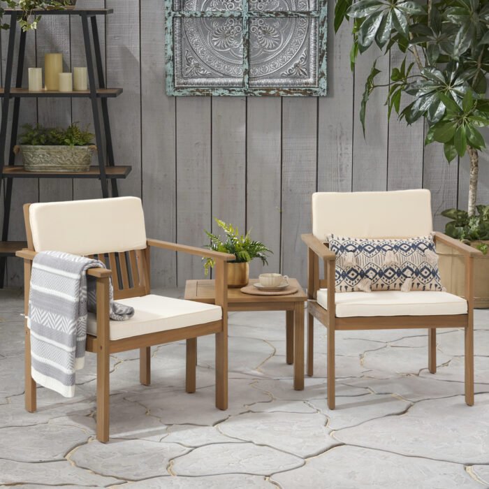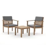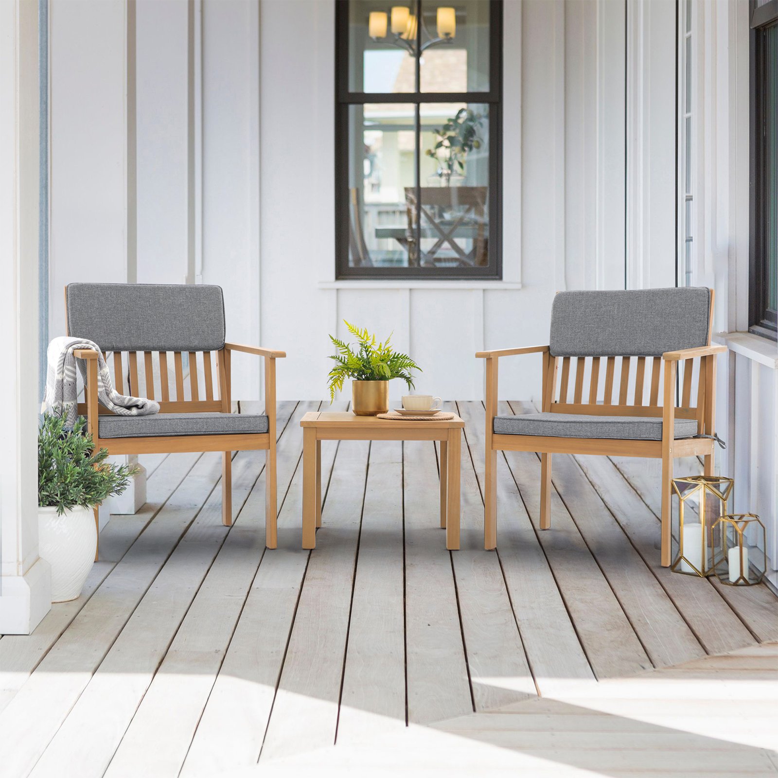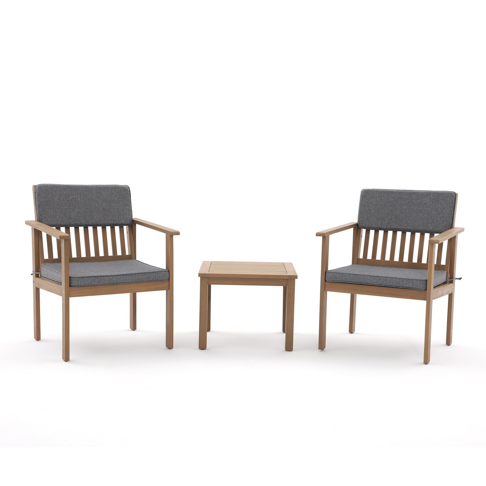 3 Piece Acacia Wood Outdoor Bistro Set, Wide Seat Patio Furniture Set