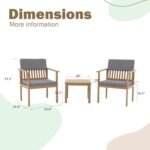 - Comfortable Cushion– The outdoor chair has a soft cushion that can be easily removed for cleaning. The cushions of the 3-piece patio set are firmly fastened to the seat base and backrest using straps, relieving you of any worries regarding windy days.