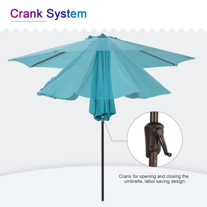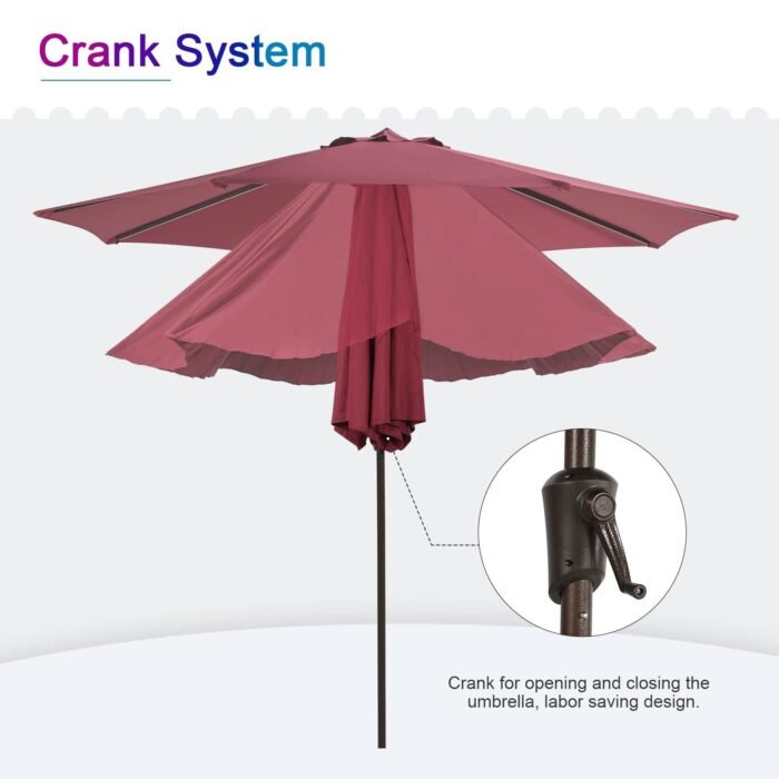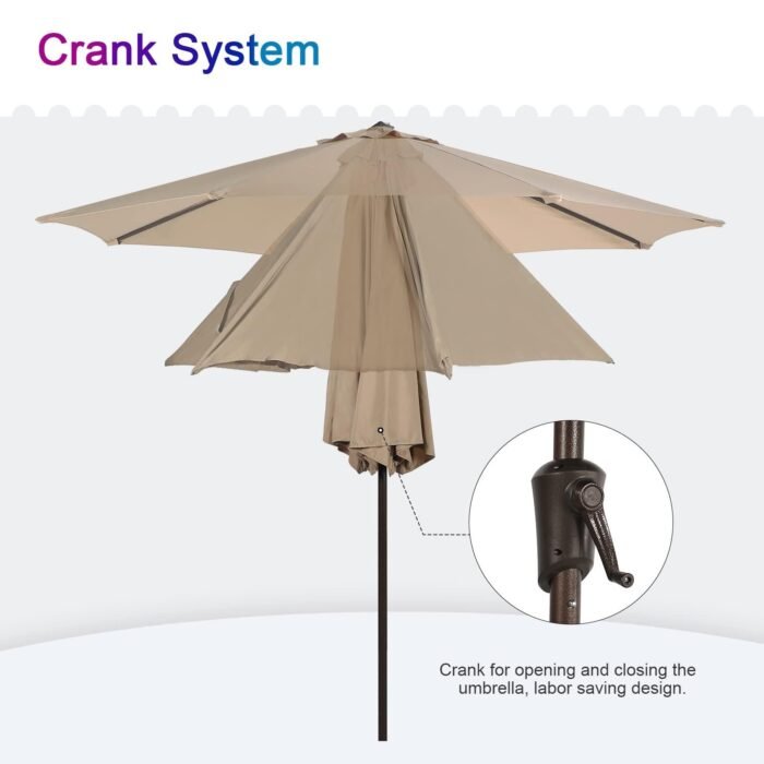 - Crank System – A easy crank mechanism makes the umbrella easy to open and close, keeping cool and comfortable from the hot and hush sun