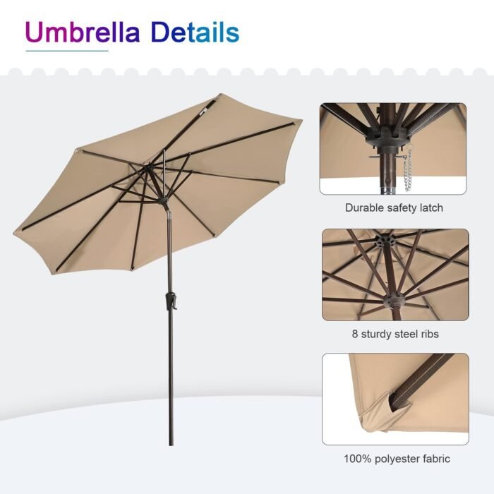 Made with durable steel frame and 8 sturdy ribs that ensure to enjoy the outdoor umbrella for years. |