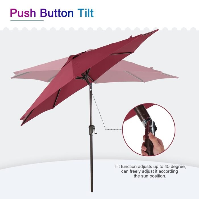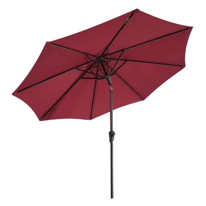 Summer is just around the corner for some of us and nothing says suitable to enjoy a relaxing afternoon outdoor like collocating a lovely 9ft patio umbrella. This patio umbrella boasts a heavy-duty steel pole and 8 ribs, which are sturdy and durable. Features functional design such as tilt mechanism and crank system allowing to adjust the outdoor sun umbrella to the perfect angle. The wind-vent at the top of polyester canopy helps add stability. Ideal for multiple outdoor occasions.