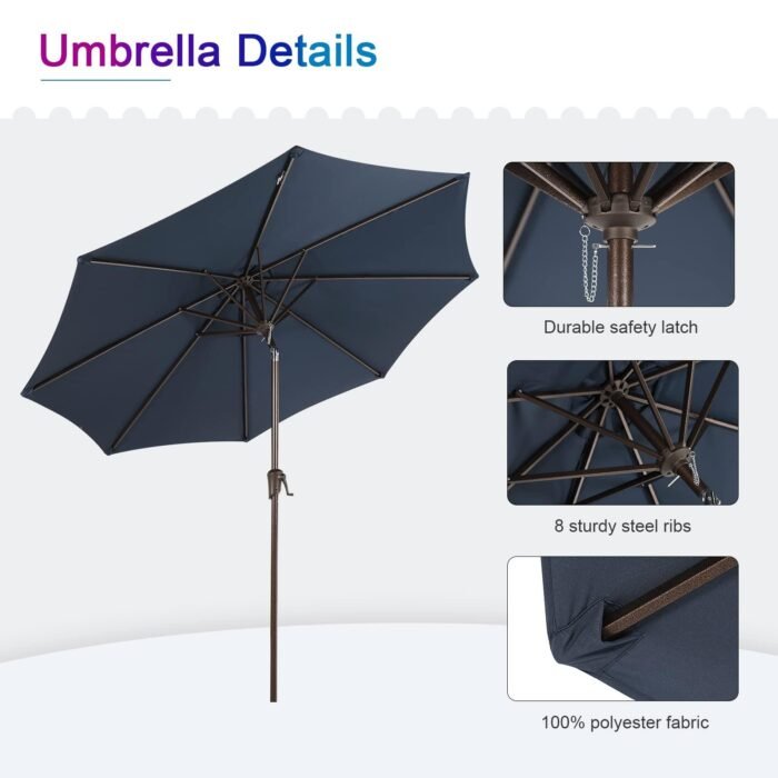 - Heavy-duty Frame –Solid 8-rib steel frame and steel pole support the 11 feet canopy and help to resist warping and other damage in the wind