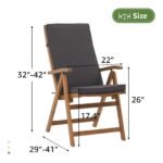 OC ORANGE-CASUAL 2Pcs Foldable & Adjustable Acacia Wood Patio Dining Chairs Outdoor Reclining Chairs with Cushions