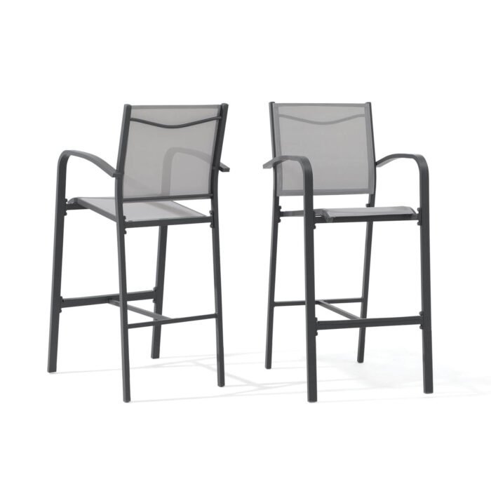 - Modern Barstool – Perfectly blending clean metal armrest and refined grey fabric, the small outdoor bar chair with a timeless look that complements spaces of all sorts, making this ideal for your backyard, poolside, or garden.